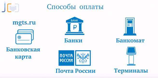 Официальный сайт ПАО МГТС предлагает оплатить услуги так: